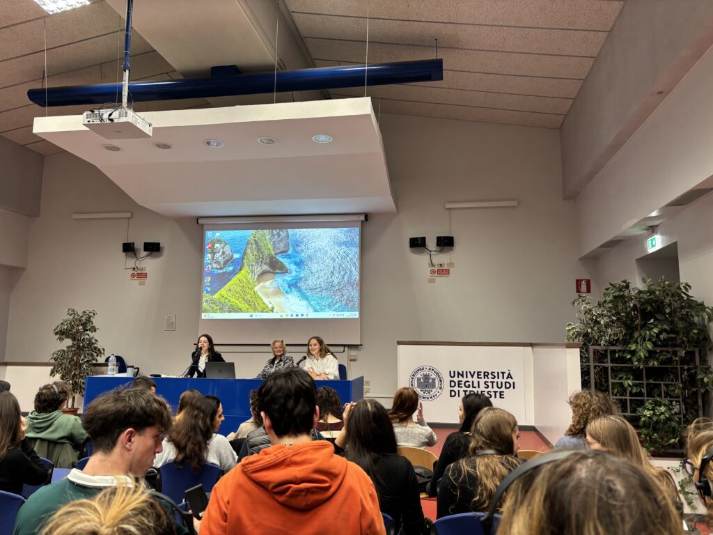 Verder gaven ook de bachelorstudenten van de Universiteit van Triëst drie boeiende presentaties, waarin zij het werk voorstelden dat zij binnen hun portfolio hadden uitgewerkt.