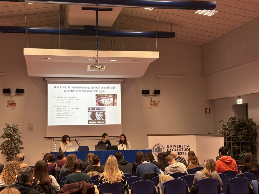 Een namiddag vol talen, stemmen en herinneringen vulde op 24 oktober de aula van het Liceo Petrarca in Triëst. Docenten en studenten kwamen er samen voor het slotevenement van het project Anne Frank in vertaling, dat deel uitmaakt van het grotere onderzoeksproject Anne Franks voetsporen.